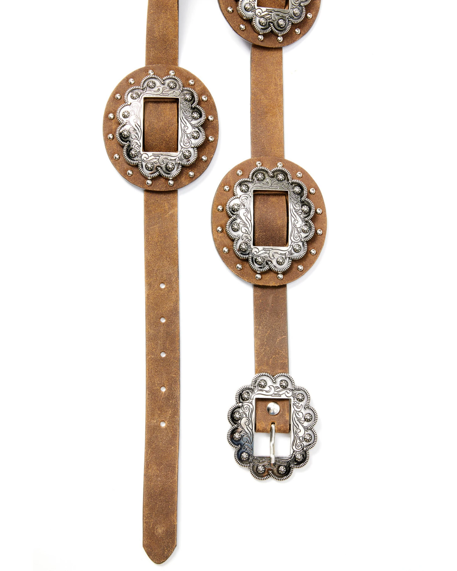- Conchos with silver stud embellishments