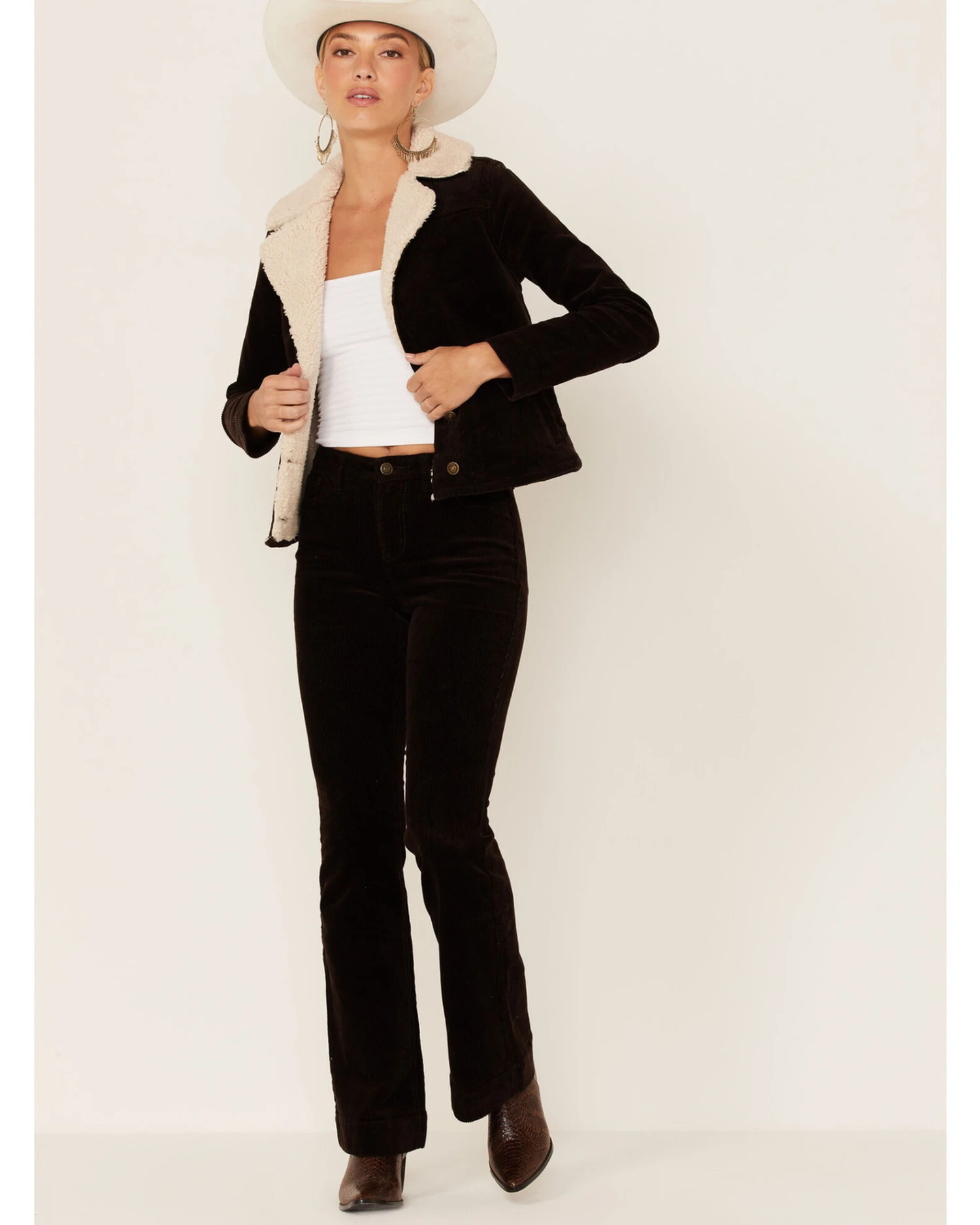 Shyanne Women’s Dark Brown Cord Sherpa Button-Front Moto Jacket