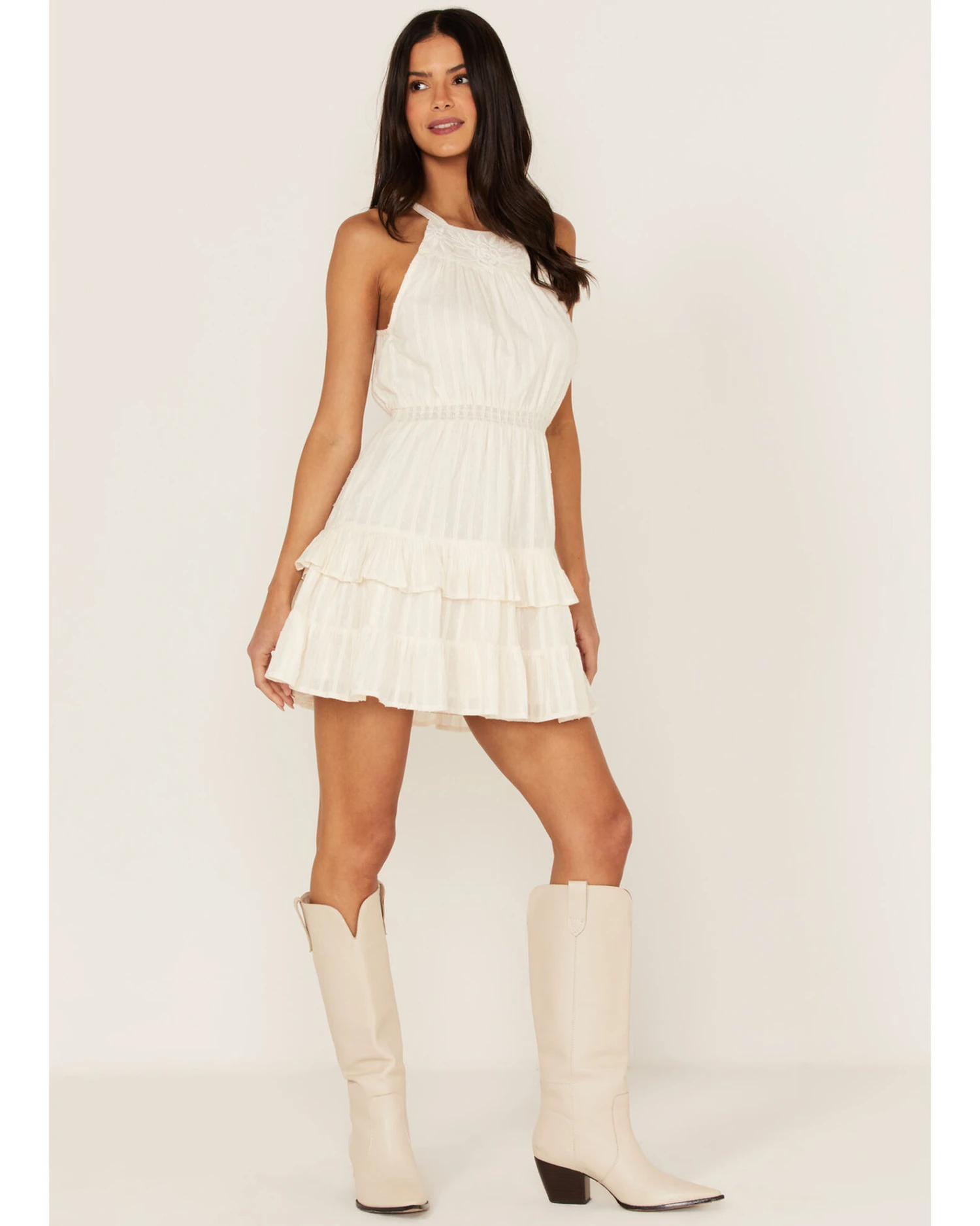 Shyanne Women’s Swiss Dot Embroidered Halter Neck Dress