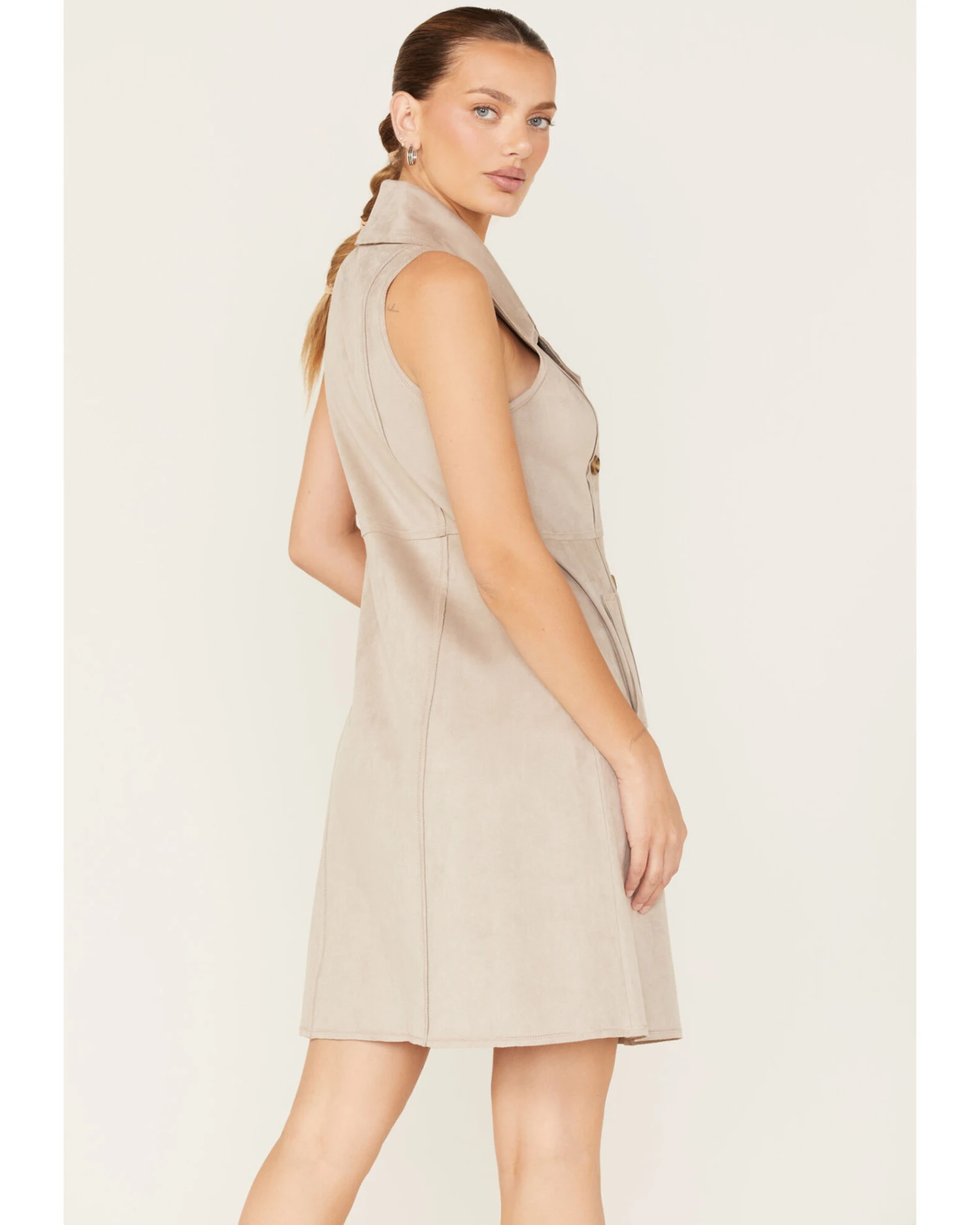 - Allover taupe faux suede